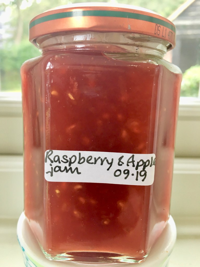 Next, more rhubarb chutney whilst also starting on Jam; Apple (of course!) and Strawberry, Apple & Raspberry, then Apple & Blackberry – tiny wild berries picked from the hedgerow edging the field. The basic rule for jam is equal quantities of fruit and preserving sugar – here is a recipe that’s good for adapting! https://www.fabfood4all.co.uk/easy-blackberry-apple-jam/