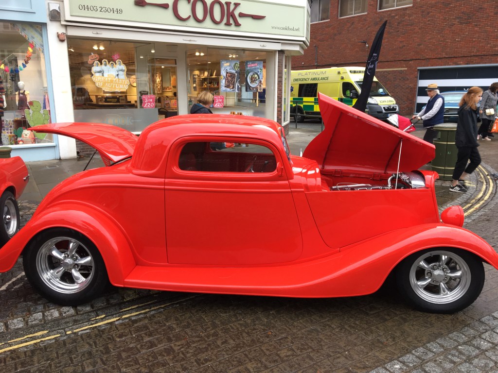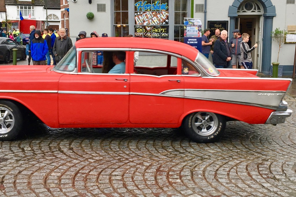 The combination of a huge array of well loved, pampered brightly coloured cars in all shapes and sizes (with doting owners to match!), ‘Elvis’ and his chicks playing in the bandstand, busy market stalls and people enjoying a sunday afternoon on the cobbled streets of Horsham – browsing, sitting at cafes or watching the bandstand show, couldn’t fail to bring a huge smile to anyone’s face.