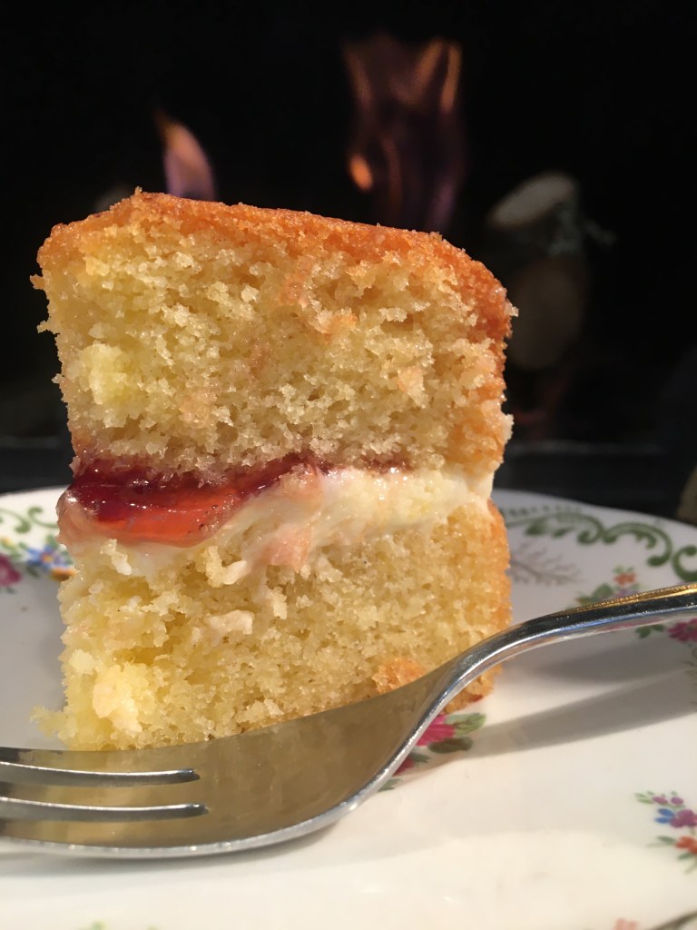 This is a great recipe – originally from Jamie Oliver. I’d been hesitant to make a vegan Victoria Sandwich, but this was what our winter birthday girl had requested, & this recipe is a definite ‘keeper’. Fulfilling the birthday girl’s wish for a ‘flower cake’ in the depths of winter was more difficult – but, thanks to some very elderly, well tended nasturtiums, we just got away with it!