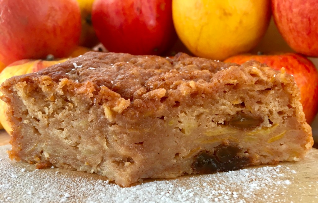 Super quick and simple to make, this fresh, fruity cake starts with processing a couple of apples. The puree flavours the moist cake deliciously without making it heavy. Cinnamon fills the whole house with the comforting aroma of sweet fruit and homely spice.