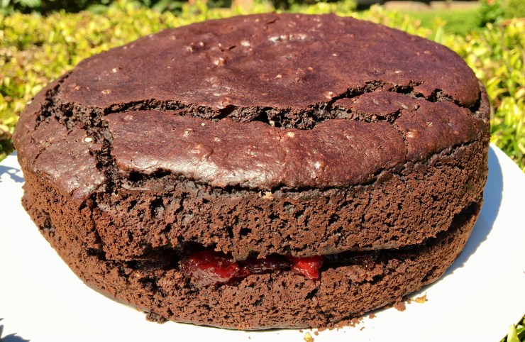 I was just amazed at all the usual cake ingredients that this one doesn’t contain – but it’s still a lovely end product (though probably not if you don’t like choc cake anyway!!) Thanks, Derrick 🙂