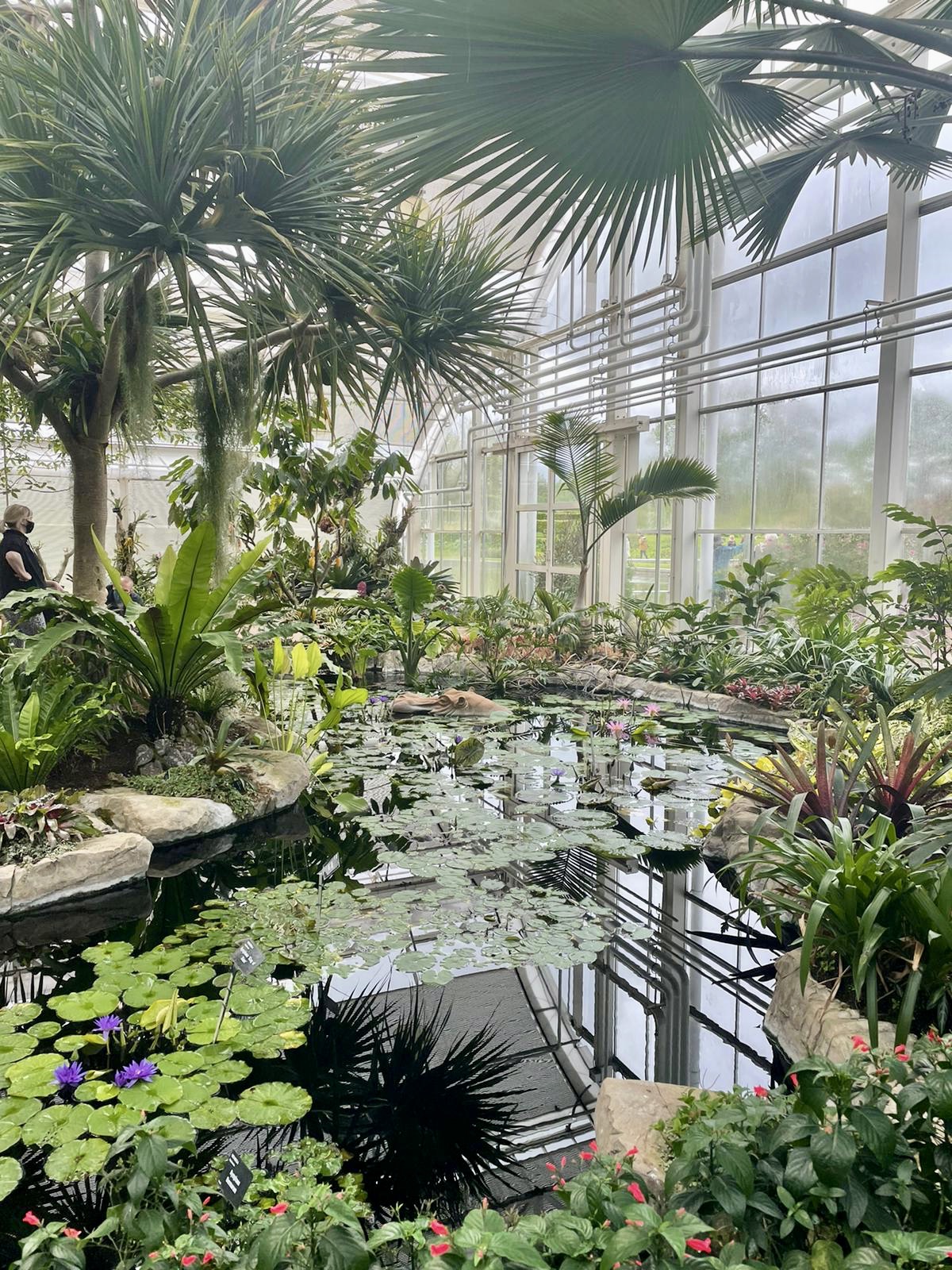 Following the pathway through the glasshouse, the environment and climate gradually changes. The pathway leads you through the world in plants, many of which are rare & endangered species.