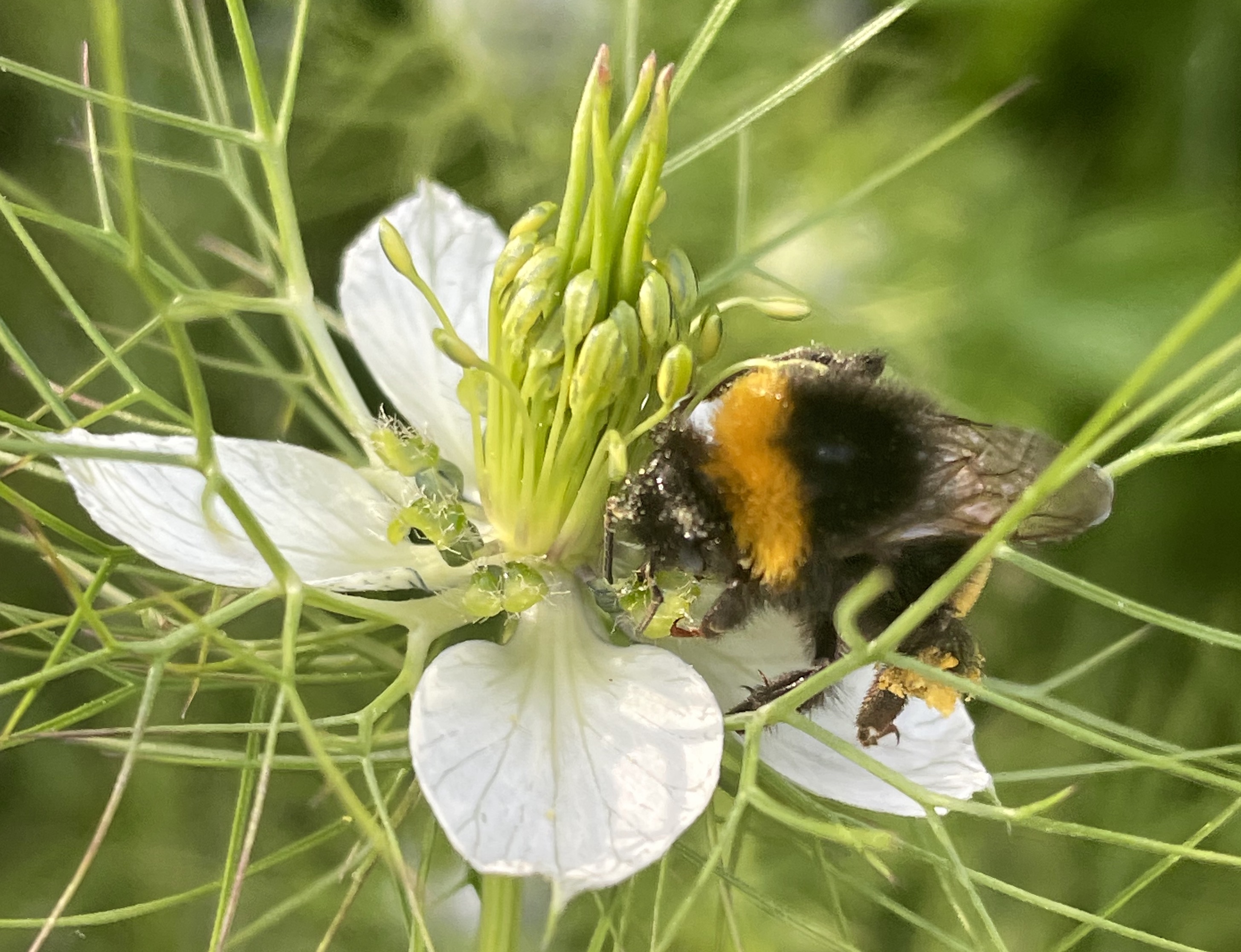 No Mow May was rewarding with increased numbers of bees and butterflies, so we’ve increased the areas of longer grass. Due to the huge numbers of rabbits, the wild flower seed I planted last year didn’t thrive, so I’m trying reintroducing native varieties by growing them on from seed and planting out when larger plants. Hoping they will escape the rabbit’s constant chomping, and that crickets will soon join other insects, with their iconic clicking noise, or ‘stridulation’ that is such a special feature of warm countryside days.