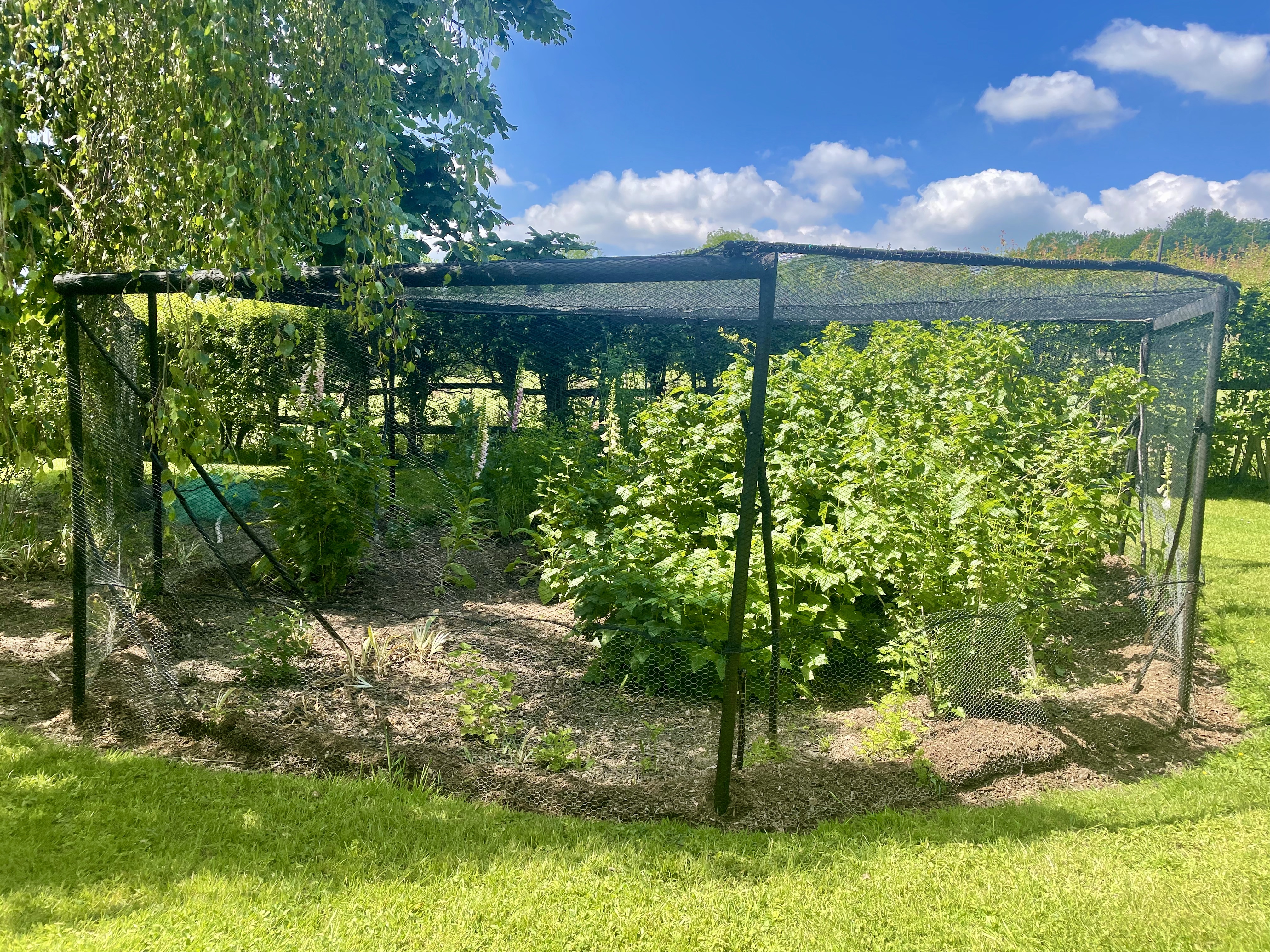We have refurbished our large currant bed, replacing the old netting which was very second hand when we first set the bed up, as an experiment, a couple of years ago. It’s proved that the design works, rewarding us with literally buckets of sparkling red and black pearly currants each year despite the bed being waterlogged each winter.