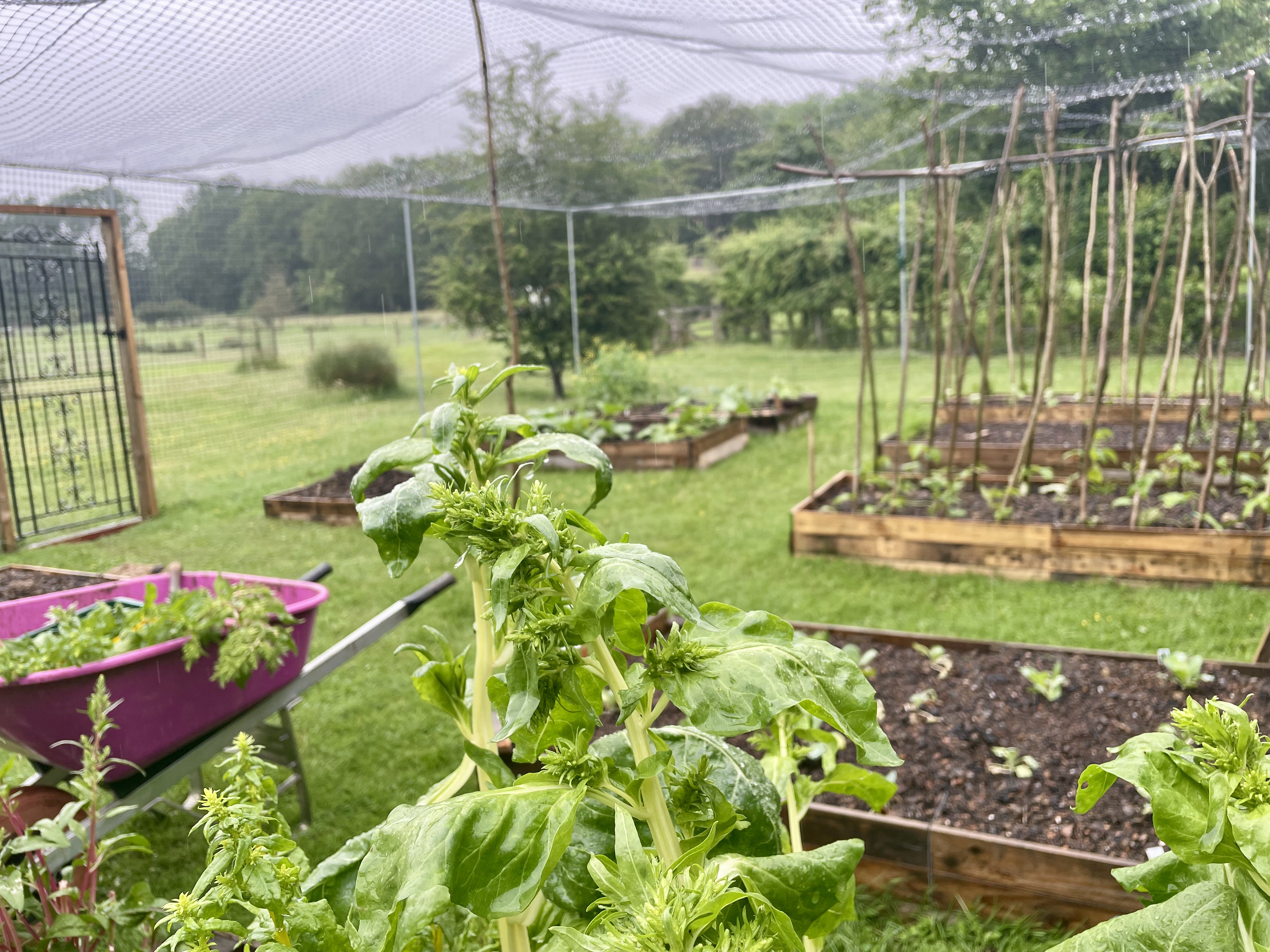 The deer and rabbit proof vegetable garden we made as last year’s ‘lockdown’ project was more successful than we dared dream, supplying vegetables from June to the end of January. This June, we have added the additional one large & 2 half sized raised beds which complete it.