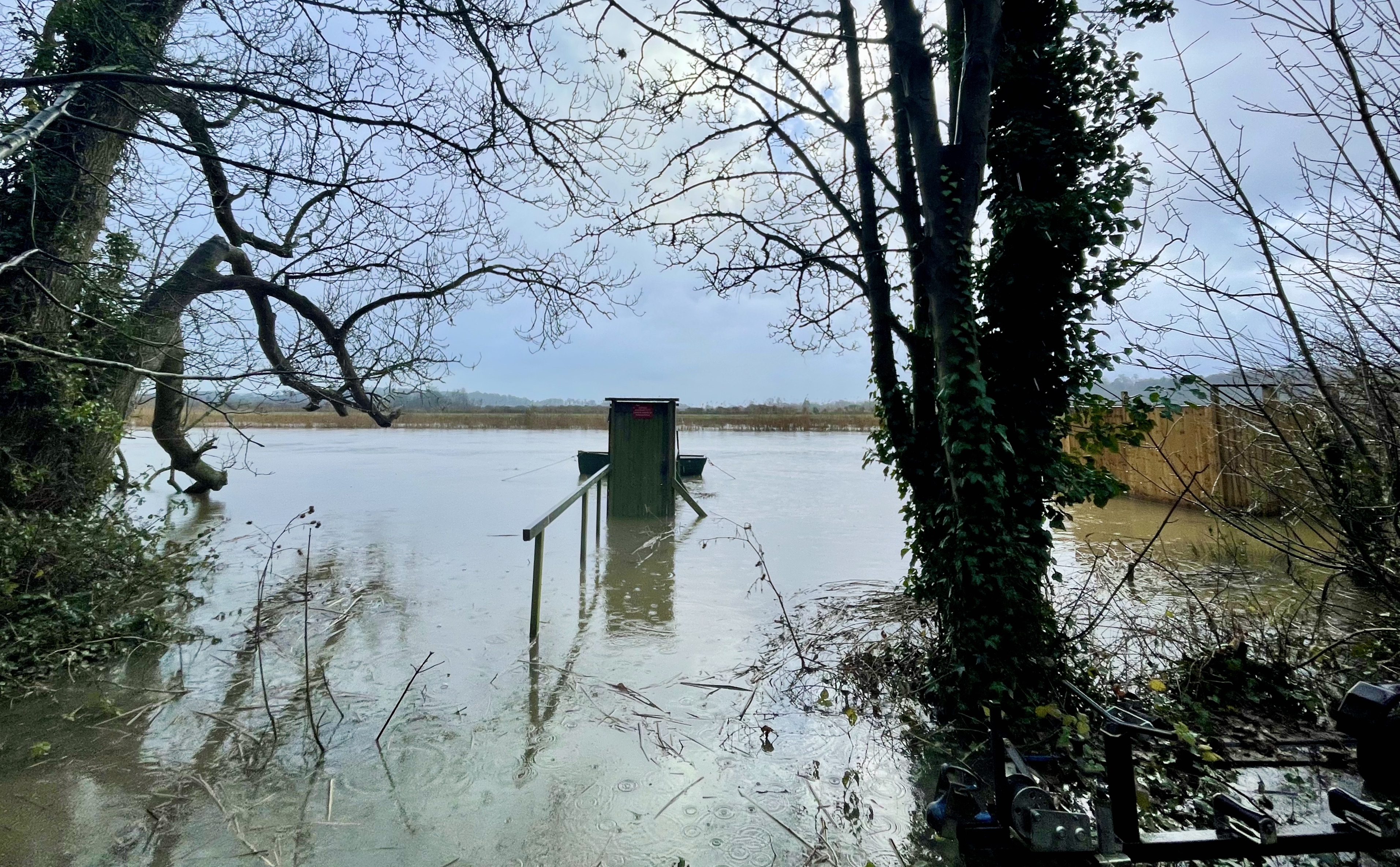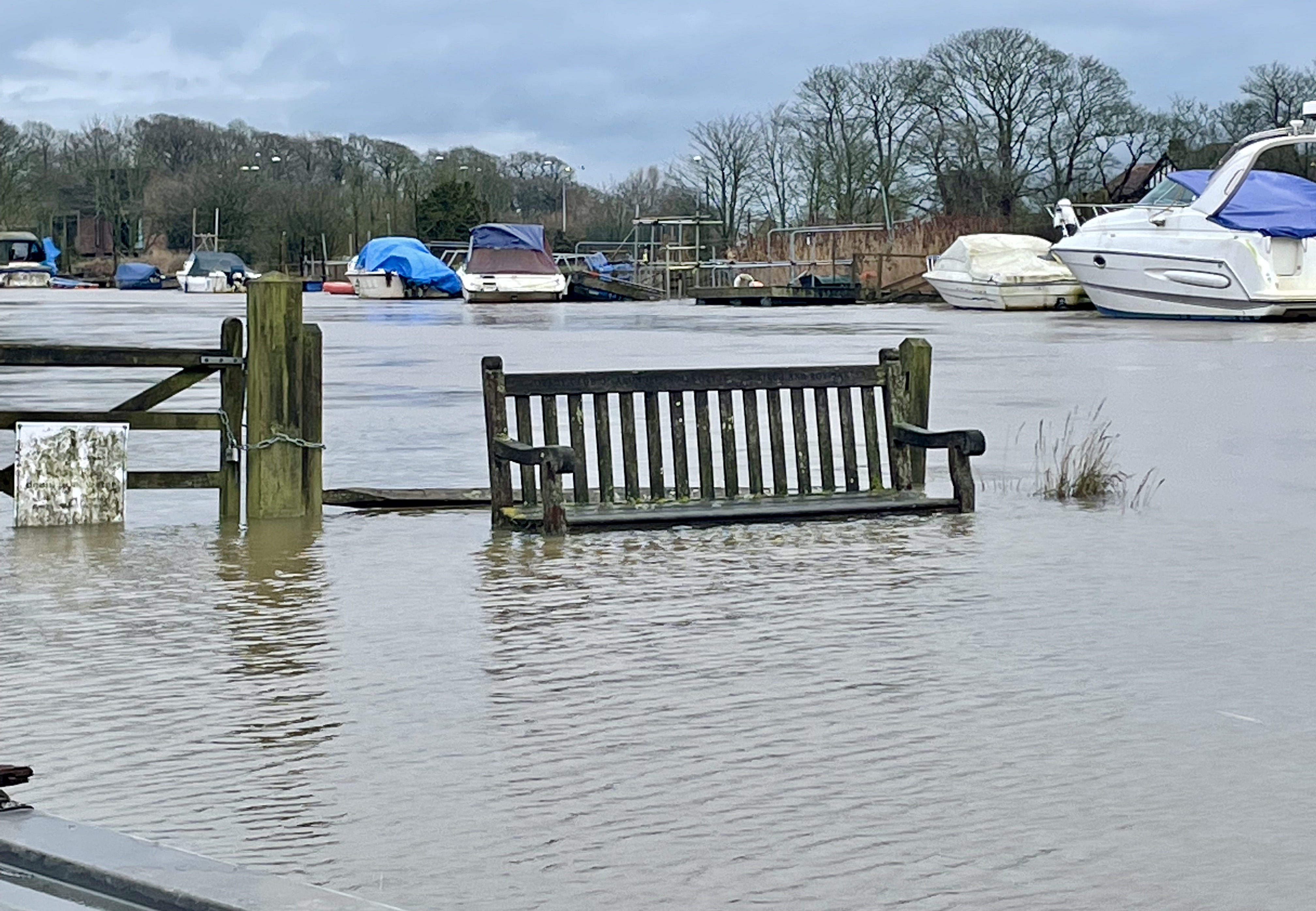 Flooded pontoon at the boatyard, high tides, & a very wet seat!