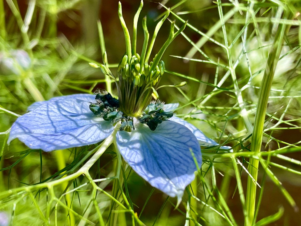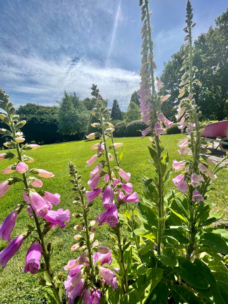 Now grown into slim tall spikes, with attractive serrated leaves, they have proved to be both beautiful and an absolute honey pot to the bees. Enchanting to watch – multiple bees perch, seemingly for hours, transfixed on each flower head in a way that I’ve never seen before!
