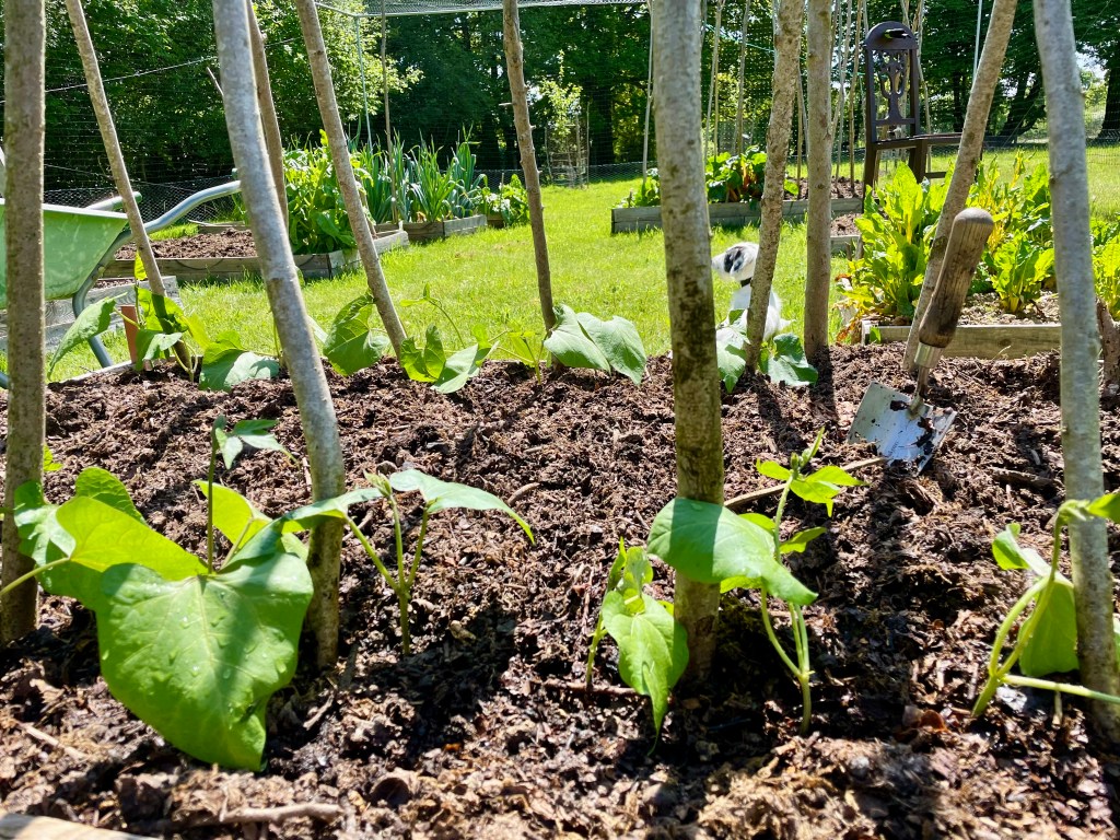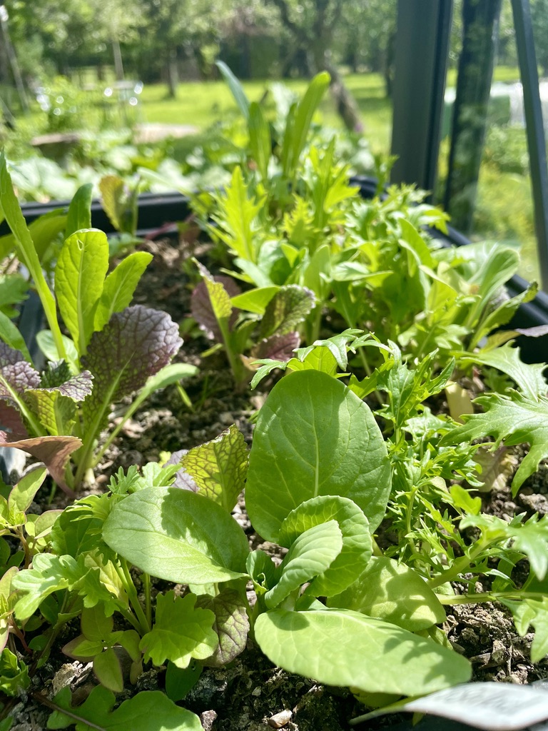 Our big investment this year is a lovely greenhouse – delivered the day before Storm Eunice shook the UK in the spring. After a delayed start, whilst we waited for the winds to die down, and cleared the fallen trees, branches and other debris, it’s now up, looking as though it’s always nestled near the Annexe fruit garden. It’s been hugely valuable already. So much easier than the DIY cold frames we’ve used in the past!