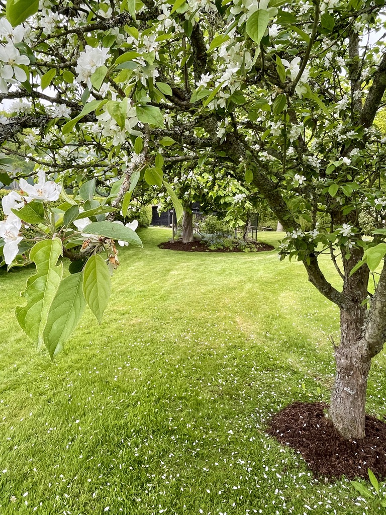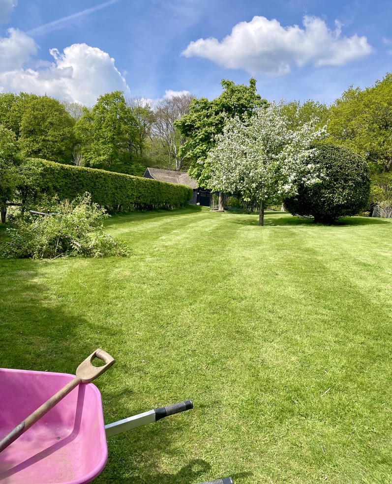 We have implemented No Mow May in increased areas of the garden & field, with beautiful results and a visibly positive impact on the amount of visiting insects. So much so, that we will keep it going throughout the summer, not just for May! See the Plantlife website for details. Last year, an added benefit of leaving large areas of grass to grow was that we – and guests – enjoyed the ‘soft landscaping’ produced by paths cut through swathes of grass and wildflowers. And we were able to make all our own hay to see the Sheep through the winter…