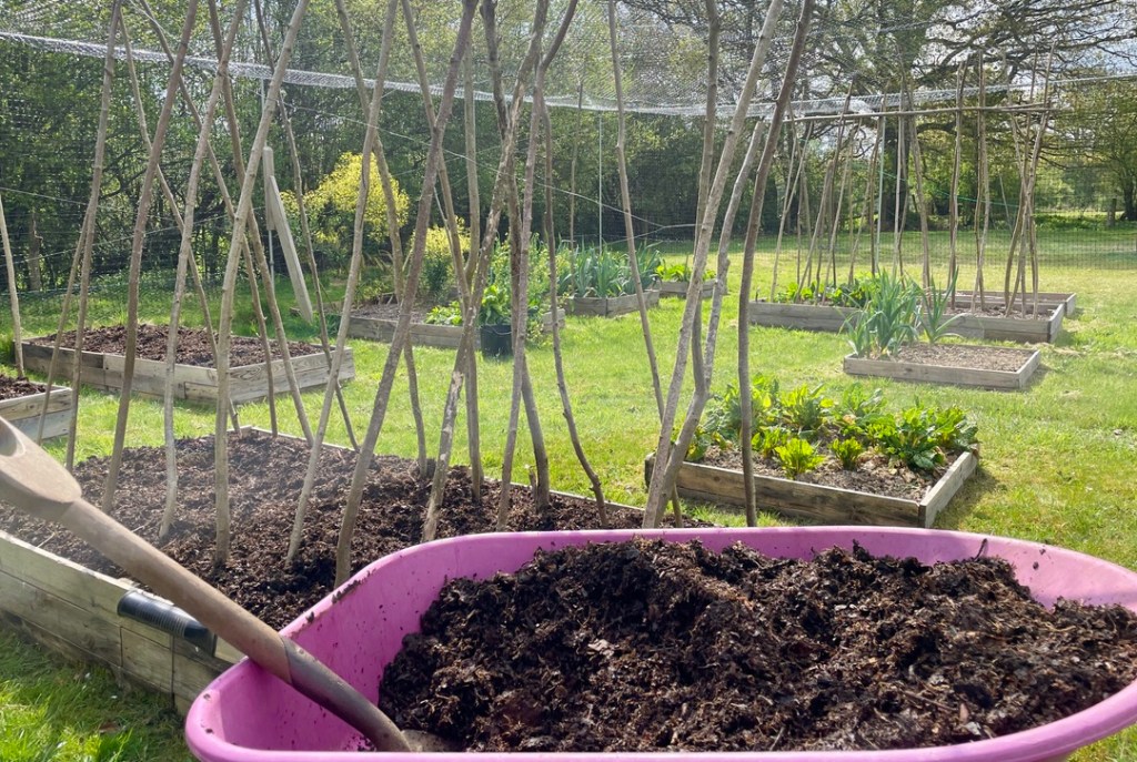 All beds were emptied – their contents being enjoyed by us or the chickens before ending up on the compost heap. The slow cycle of nature continued as we emptied last year’s heaps to top dress each vegetable bed with a thick layer of rich, dark home made compost – still live with pink worms, ready to extend their work to the growing beds.