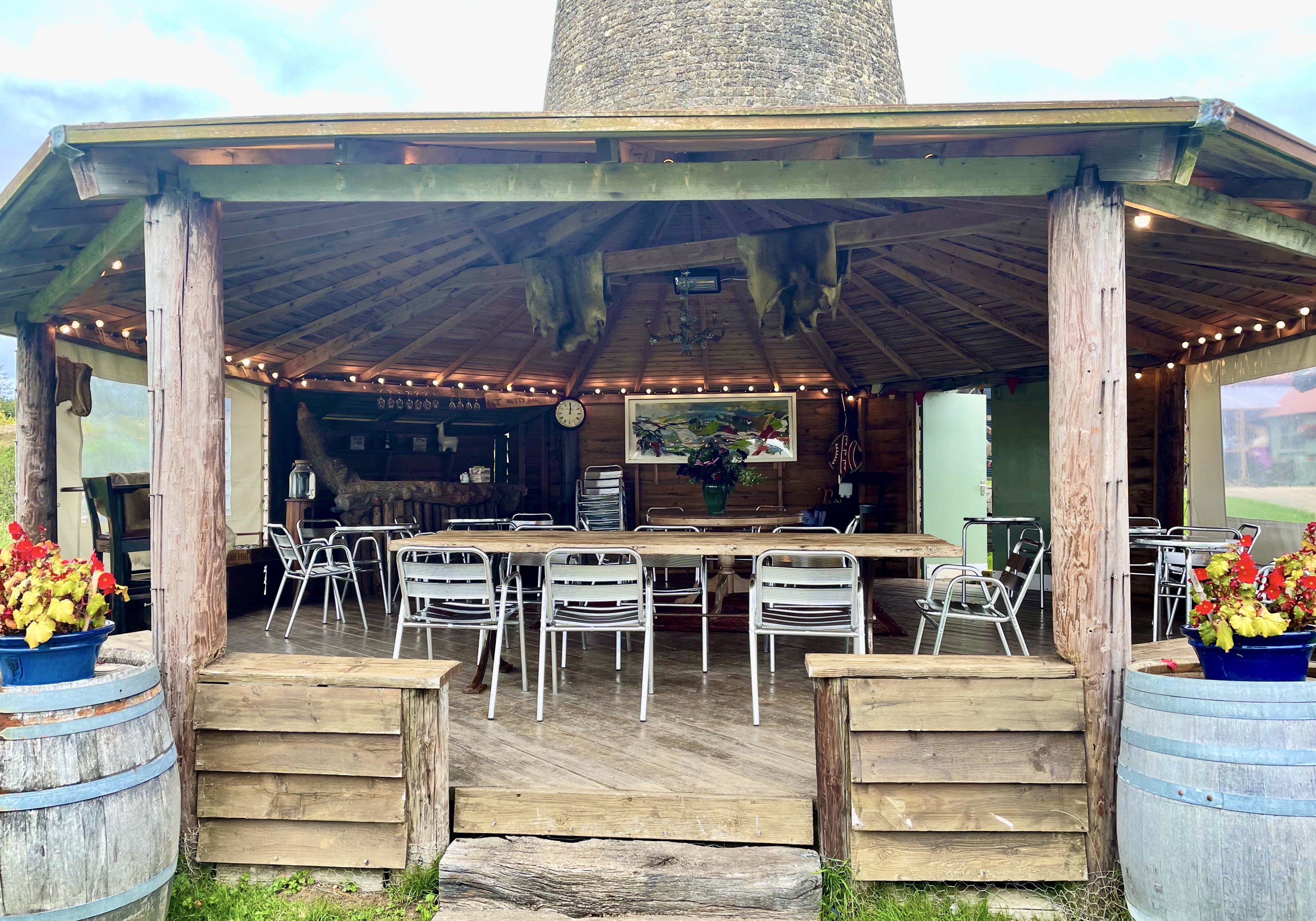 The vineyard has a pretty outdoor bar (and, of course, oven!) where events are sometimes held, and an intriguing disused windmill, from which you will enjoy great views over the vines. A really interesting place to visit – where you will feel welcome, whether visiting just for a walk and to try & buy the wine, or for a tour, often led by Peter himself or for an event. Just down the road from the much larger Tinwood Estate.