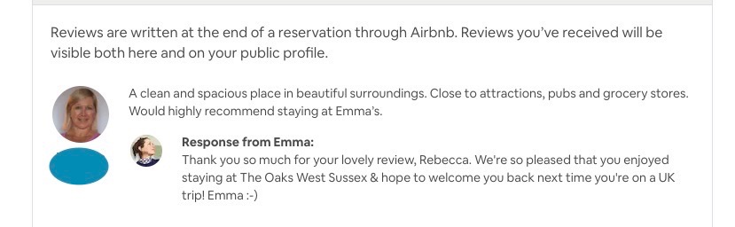 “My girlfriend and I had the pleasure to be welcomed my Emma in her outstanding property. We immediately felt at home! … very well equipped and Emma made sure we had everything we needed… spotless on our arrival. Everything was very clean and freshly scented thanks to Emmaโs attention to detail. The property is very large so it allowed us to feel at ease during our two week of mandatory quarantine in the UK. Daily walks in nature and beautiful quietness right outside the front door. We truly felt we had our privacy and will be recommending this place to anyone who is seeking for an escape in Nature… Autumn offers a beautiful change of colours in nature. The property offers a very large parking space for anyone who is thinking of renting a car. The town is a very short drive away… Emma has been so kind to help us get sorted with food deliveries and other expected packages since our arrival. We are so pleased with our stay that we decided to extend … We highly recommend anyone for a stay at Emmaโs place. It is a beautiful quiet escape only an hour away from London!